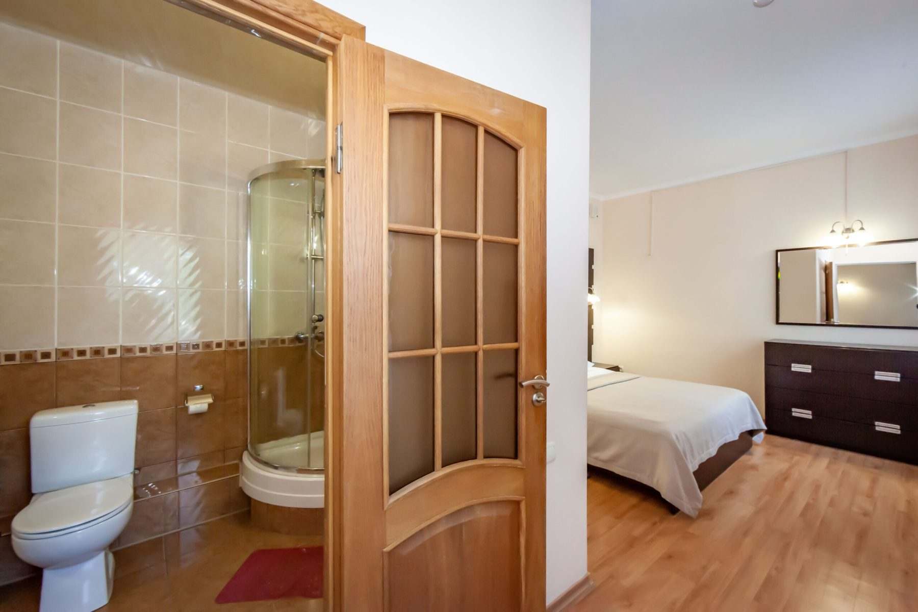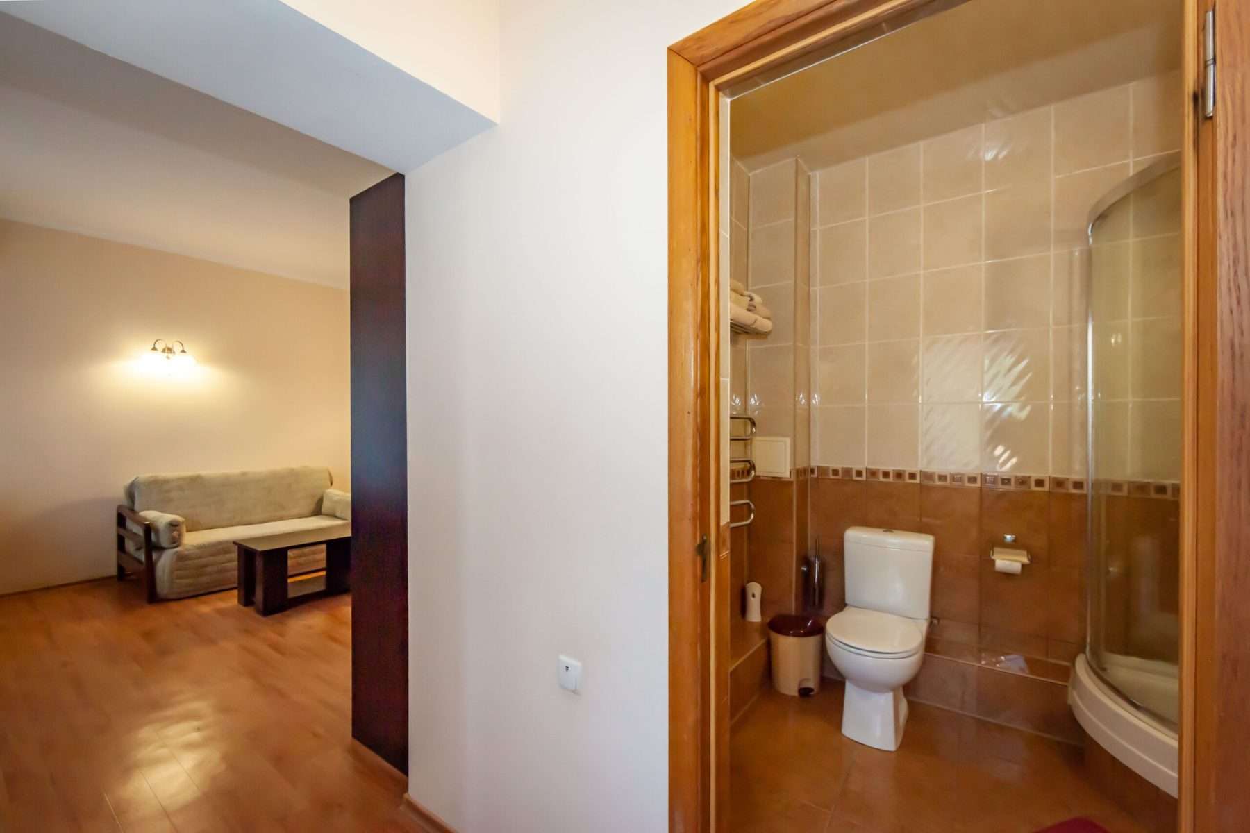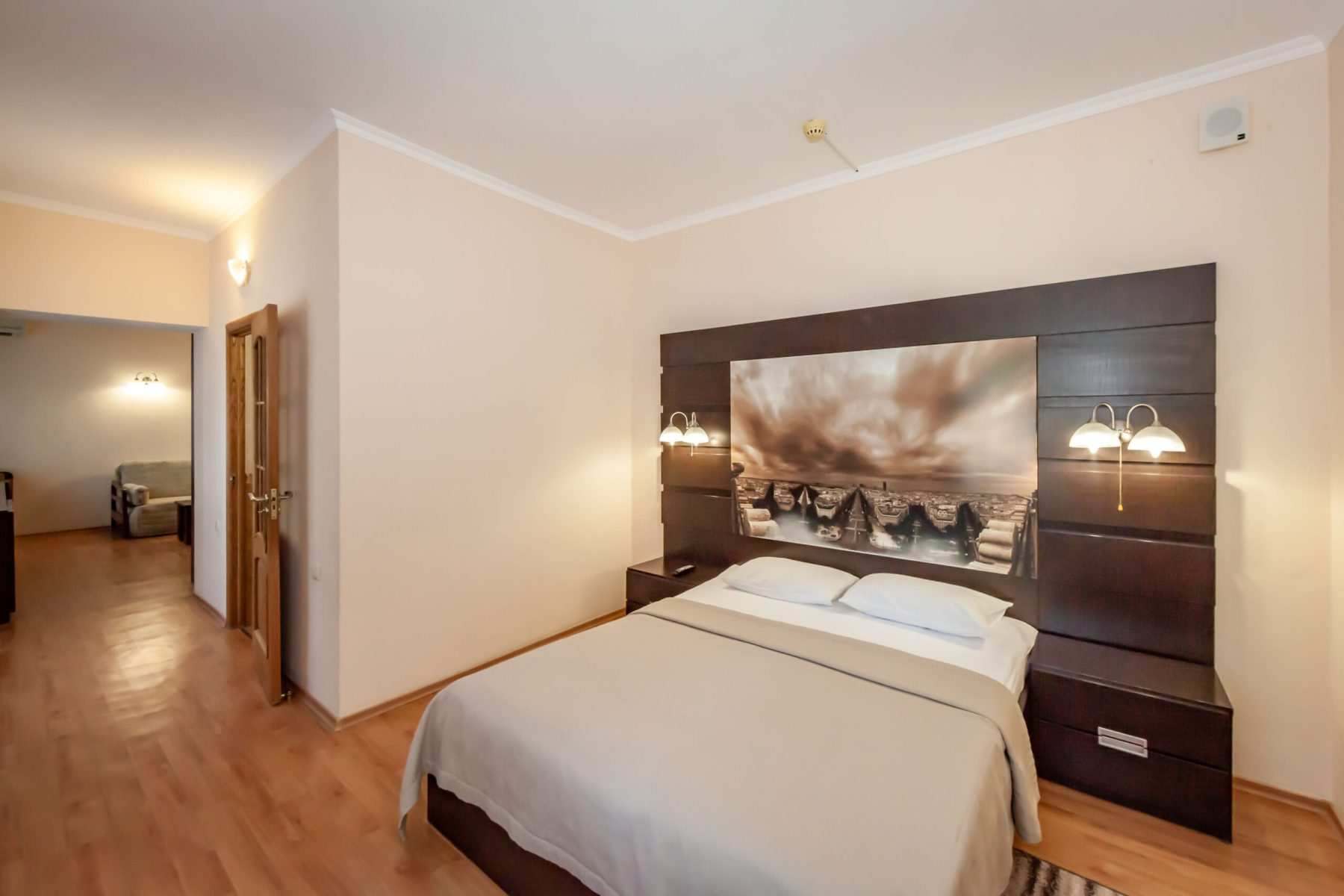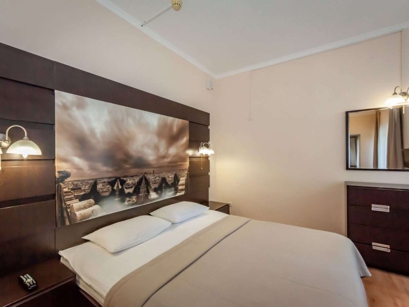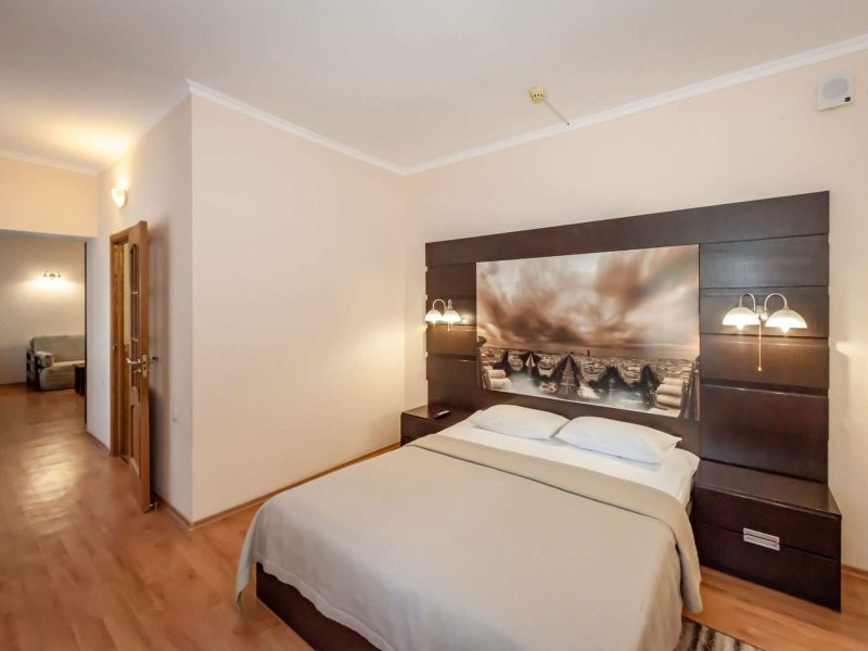 - двухкомнатный номер, состоящий из двух комнат — гостиной и спальной, просторной прихожей и балконом*