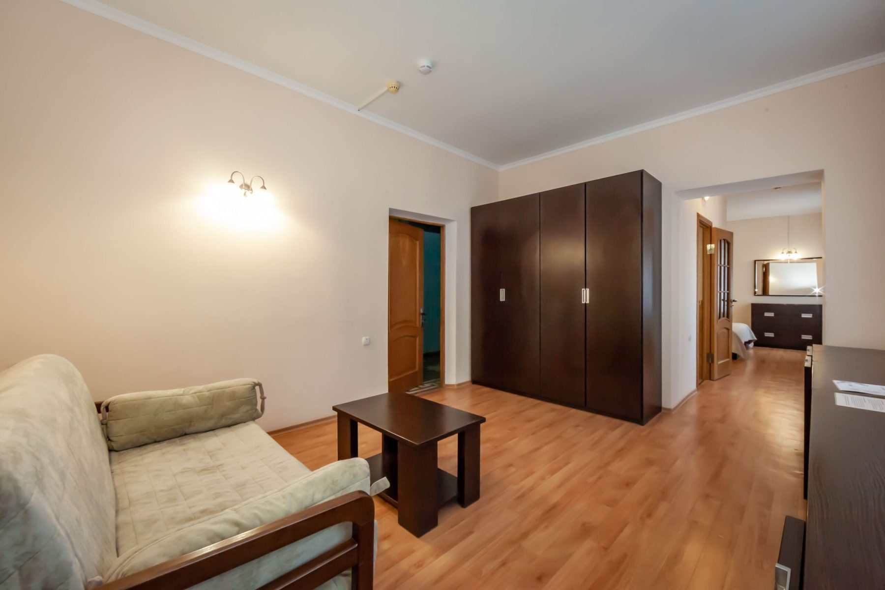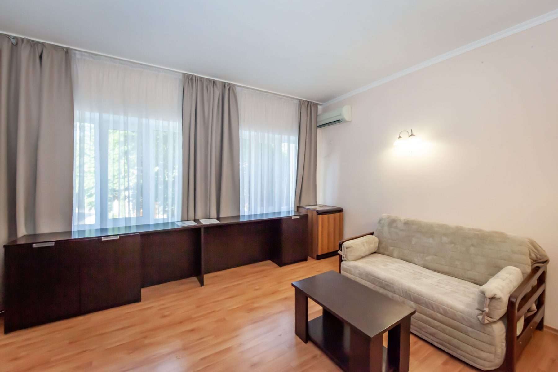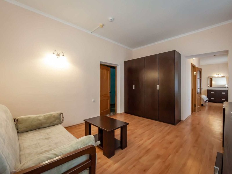 - гостиная с мягким раскладным диваном, комфортным для размещения в качестве дополнительного места для ребёнка