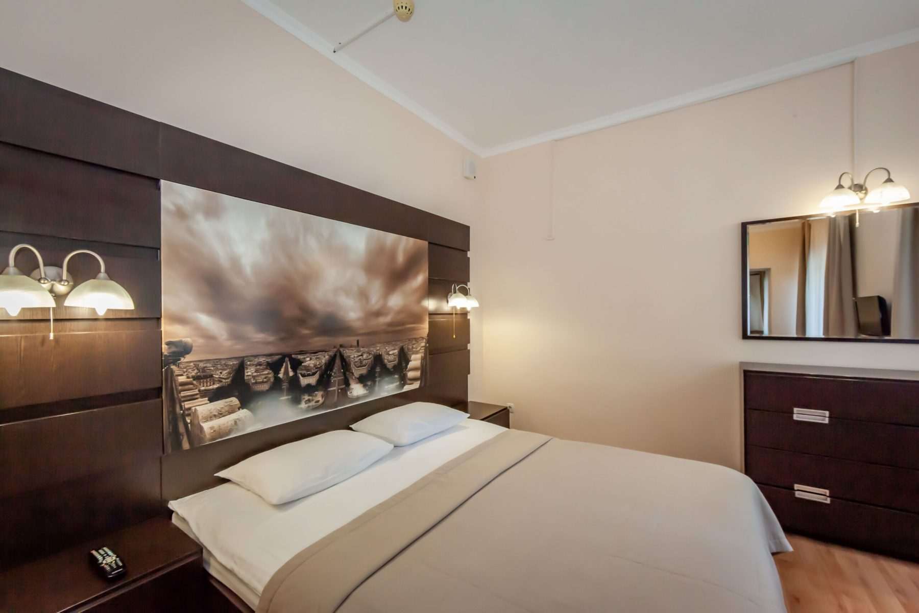 - двуспальная кровать в спальной комнате